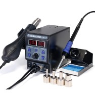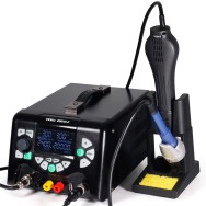 La nueva estación de retrabajo HAKKO FX-973 de 3 puertos ofrece 400 W (máximo) de alto rendimiento para el retrabajo de electrónica moderna. Admite hasta 10 piezas de mano con un amplio rango de temperatura, cuenta con una bomba de vacío integrada y es compatible con las herramientas de desoldadura FR-4103/4104